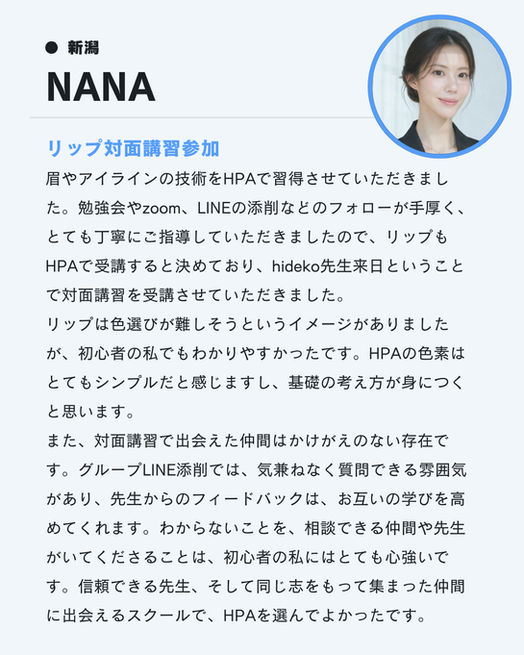 HPAのコースを修了してからがアートメイクアーティストとしての本当のスタートです。